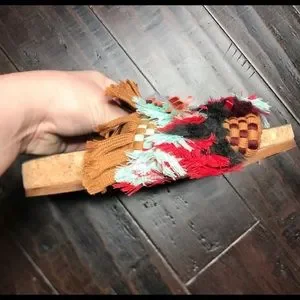 Chloe Kerenn Woven Leather Fringe Sandal Slide