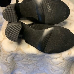 Only worn once!!!! open toe black with A thick heel and in great shape if you have any questions or need further pictures please let me know