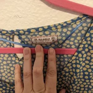 blue dress with yellow sunny circles.
