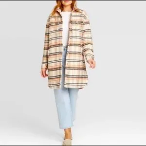 NWT Universal Thread Women's Mid Length Plaid Shirt Jacket