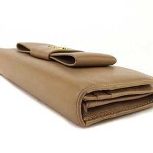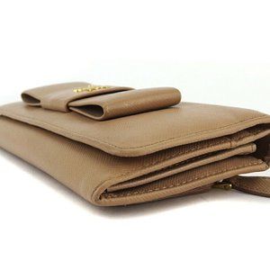 AUTH PRADA Purse Ribbon Motif Beige Leathe
