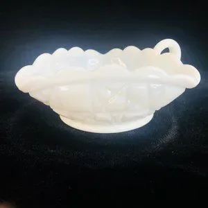 Fenton Block And Star Milk Glass Triangle Candy Dish Bowl Round Handle Vintage