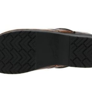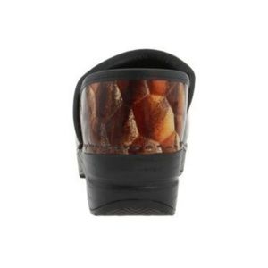 Dansko Professional Brown Patent Leather Tiger's Eye Clog Shoes Dansko's flagship classic for all-day comfort, support and unmistakable style. high quality leather uppers that follow the natural contours of the foot. Box leather is ideal for the workplace environments with wet, acidic or greasy conditions. Nonallergenic vegetable tanned leather sockliner wrapped around synthetic foam absorbs and evaporates perspiration Nurse Comfortable All Day Wear