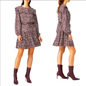 Brand new with tags! Rebecca Minkoff Selandra dress. 615 Currant color, button front from waist up, drawstring waist. Peasant long sleeve, ruffle detail on top. Size XL