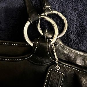 Large black leather Coach tote