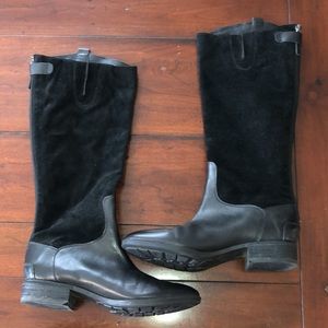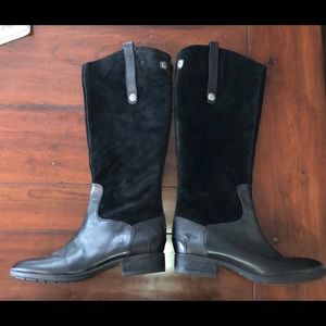Sam Edelman Black Knee High Riding Leather Suede Boots Size 9