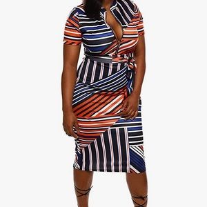 Never worn, fit like a large, great quality material, stretchy very classy dress.