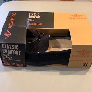 Dockers mens slippers, classic comfort, memory foam, black, XL 11 To 12, indoor and outdoor. Brand new unopened