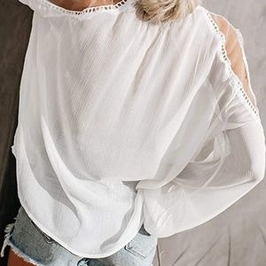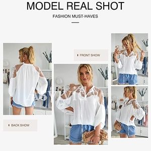 Womens White VNeck Crochet Lace Accent blouse sz sm and medium