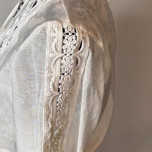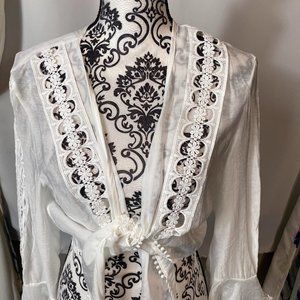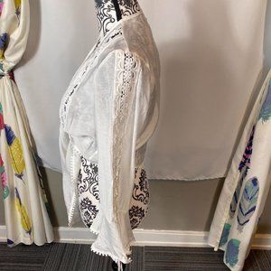 Elan Crochet Tie Front Crop Top White lightweight bell sleeve tie front. Size L