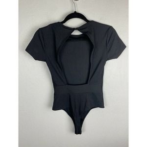 Victoria’s Secret Sport Black Ribbed Bodysuit Open Back Size Small