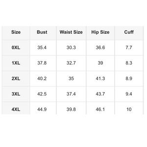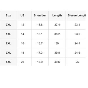 S=2/4 M= 6 L= 8/10 XL= 12 0x=12 XL=14 XXL=16 XXXL=18 4X=20