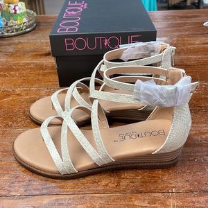 Corkys Sweet Tea white snake pattern sandals. Reach out for more details.