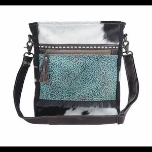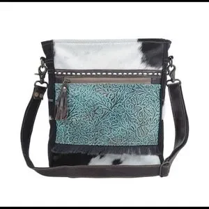 Myra shoulder bag upcycled leather handbag cow print trend boho western trending