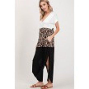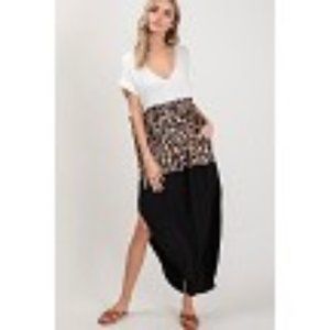 Leopard Color block v neck maxi dress USA CY Fashion see measurements