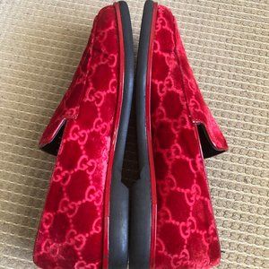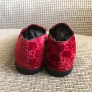 GUCCI GG Pattern Red Velvet Loafer Shoes