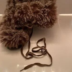 These boots are in excellent condition. A little worn inside. They are so warm! Perfect for a snowy winter. There is a long tie that wraps around the boot. They are like a Berber inside. The bottoms of the boots are excellent. Thanks for visiting my closet!