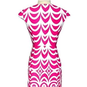 Talbots Geo Scallop Cap Sleeve Fit & Flare Pleated Dress Pink/White - Size 6 - EUC