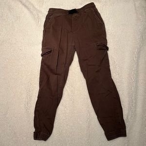 Cute pants I thrifted! They are a cool toned brown colour. They’re kind of cargo style and the fabric feels like a mix of cargo and cotton. They taper and then have a scrunch bottom - just like a jogger. They’re stretchy and could fit a little bigger or smaller depending on how you like them. They are so comfortable and I always used to get lots of compliments when I wore them. They don’t fit me anymore!