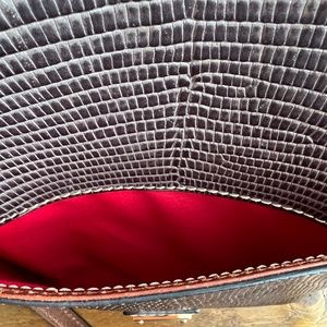 - Beautiful detailed Dooney & Burke cowhide leather lizard crossbody in chestnut brown