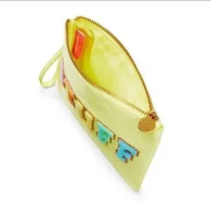 This STUFF Patch Flat Pouch from Stoney Clover Lane x Target makes it easy to stay organized while on the go. This flat pouch has a slim silhouette that's perfect for slipping into a suitcase, duffle bag, backpack and more, while providing plenty of space to store all of your things. Designed in a light yellow hue, it comes pre-customized with the word "STUFF" in different pastel color patches that are stitched onto the pouch. If you want to further customize the pouch to show off your own personal style, you can add other patches as well — reference the patch size chart to see how many patches you'll be able to fit.