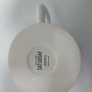 Kate Spade Saturday mug in mint condition. Measures about 4.1" tall and 3.8" across the top; microwave and dishwasher safe. Thank You.