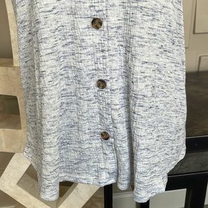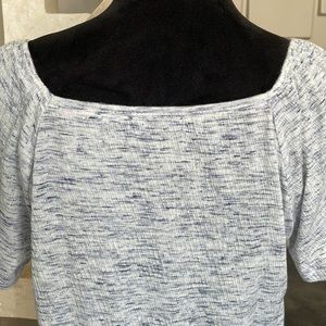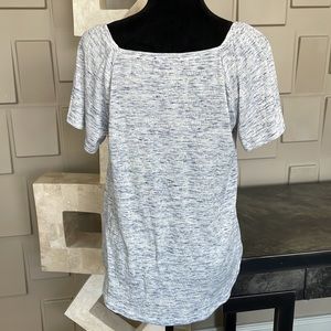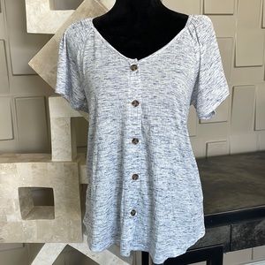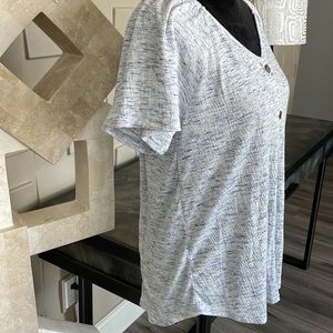 So comfortable and easy wear is this cute blue and white print pullover style short sleeve top. V neck. Beautiful cond. Never worn. Polyester rayon spandex blend Size Medium