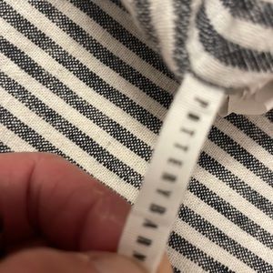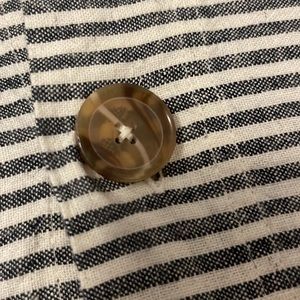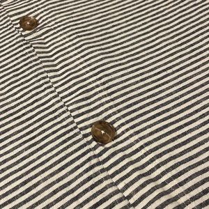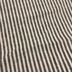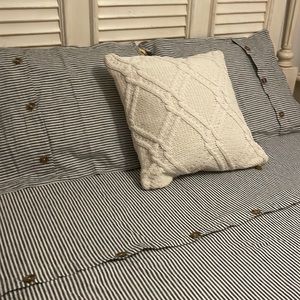 Taking stripe gray and white linen blend queen size duvet cover with two coordinating standard size shams. 55% linen 45% cotton. Buttons and Todzia duvet cover and pillow shams. This is a brand new set that has never been used.