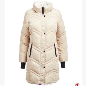 NWT Steve Madden Creme Long Heavy Duty Snow Winter Zipper Puffer Coat Size 2X