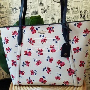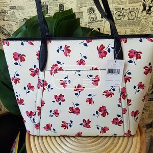 Kate Spade NWT Cara Garden Toss Large Tote Floral White Spring Summer Red pink