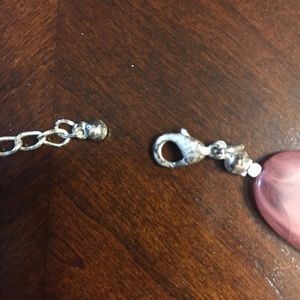 Chunky beaded necklace, beads are turquoise, brown, and light blue speckled with brown and gold. Small off white spacer beads between large beads. Silver-toned extender chain and clasp. 20.5 inch length. Good used condition, some tarnishing on clasp and chain (see photos). Costume jewelry.