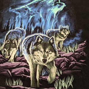 All over print style and big graphic t-shirt of wolves. New age tee.