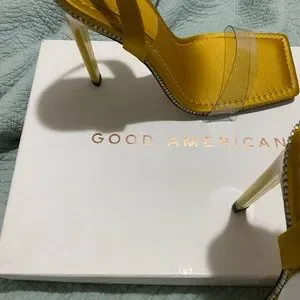 GOOD AMERICAN Crystal crush lucite sandal in ๐ lemonade ๐