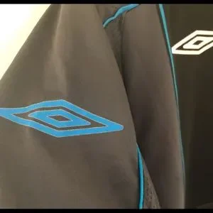 I’ve been collecting Gers shirts for awhile now but can honestly say this is the first time I’ve come across this stunning away kit with its broad dark gray and black stripes, blue piping detailing, subtle bits of red make this shirt really stand out as one of this best for the Scottish football giants! Chest Umbro diamond logo, classic RFC team crest and championship stars all sewn on perfectly. Shoulder logo is light rubber material heat pressed on. I also really like the design on both sides. The mesh material on the sides and back make the shirt breathable and very comfortable. In near perfect condition for its age. Fits like a size large. Feel free to ask any questions about this excellent unique soccer jersey.
