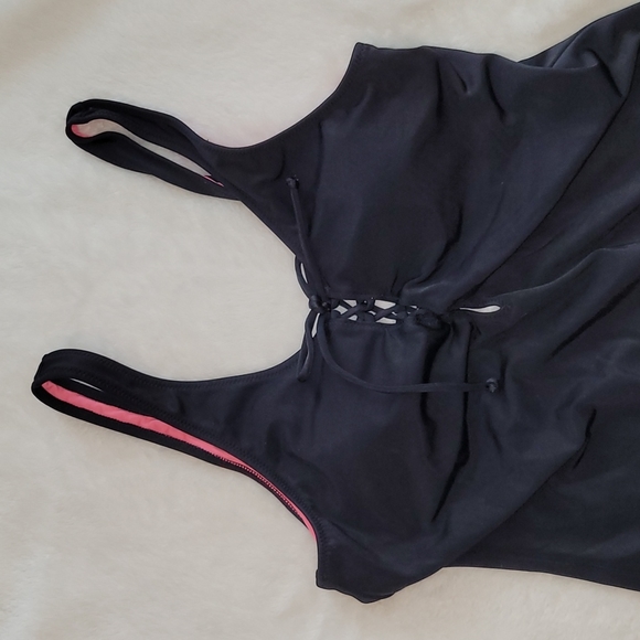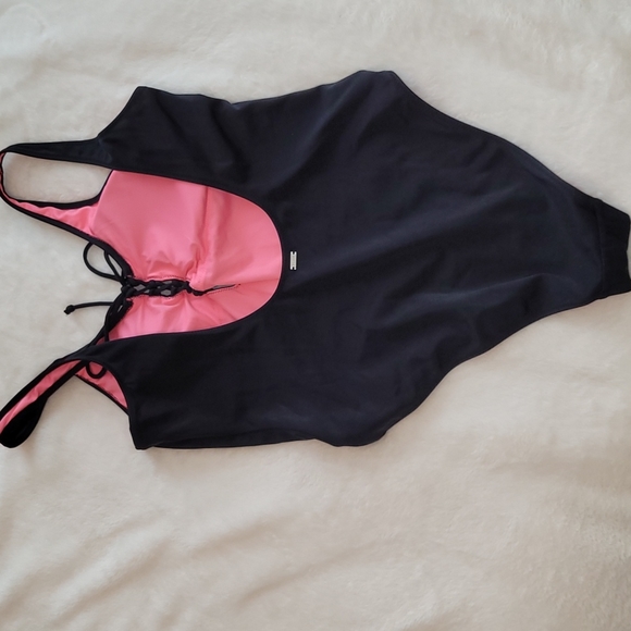 Pink Victoria’s Secret Black Tie Front One Piece Swimsuit Size Medium