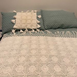 Spell and the Gypsy white sands crochet blanket and pillow cover set. Pretty ivory color. In great condition no holes or stains. Due to being in storage it needs to be cleaned but in otherwise great! Super rare and beautiful!!