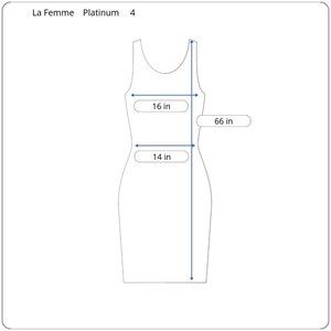 New with tags and minor defects - 428$ La Femme Women's Size 4 Platinum Off the Shoulder Portrait Collar Lined Ruched Satin Trumpet Gown Maxi Dress