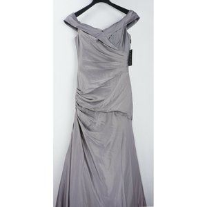 New 428$ La Femme Women's 4 Platinum Off the Shoulder Ruched Satin Trumpet Gown