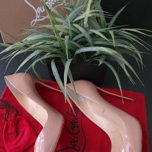 The So Kate iconic pump with timeless elegance brilliantly combines discretion and sophistication. Its all nude patent calfskin features a sculpted upper that extends its lines to the iconic bold cut. It sits easy atop a slender 120 mm heel to give you confidence, underlining Maison Christian Louboutin know-how.