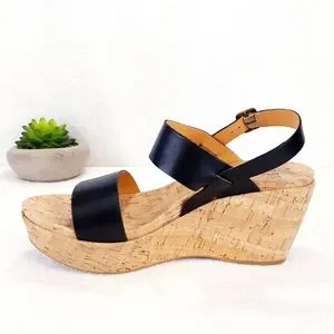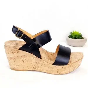 KORK-EASE AUSTIN BLACK LEATHER WEDGE SANDAL