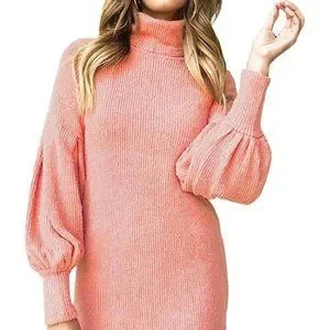 NWT Baby Pink Knit Mockneck Puff Sleeve Dress. Polyester and acrylic making this dress super soft and cozy. Its long puffy sleeve, tight cuff, turtleneck high neck, above knee length, a little stretchable sweater sheath dress, slim fit not tight, to show your body shape well. The sweater dress pair with long boots, high heels, also leggings or jeans if you're afraid it is short,get a charming and sexy look.: Suit for work, date, party, shopping, proms, daily wear. Great for year round cute wear