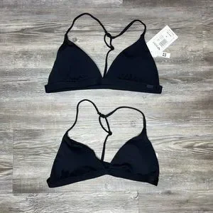 Roxy SD Beach Classics T Back Moderate Coverage Bikini Top Solid Black