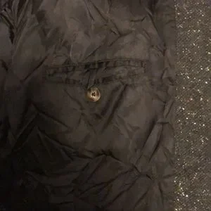 Size S Liz Claiborne Dark Brown and Gray Wool Blend Tweed Button-Down Jacket. Interlined. Has a secret inner pocket and three outer pockets. Great condition! 40% Wool 20% Nylon 15% Acrylic 10% Polyester 10% Silk