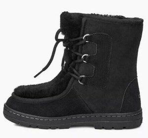 New Ugg MUKLUK REVIVAL 10 Black Leather Suede Fur Sheepskin Wm Boots Eu 41 Rts: $240.Inspired by the high, fur-lined boots worn in the Arctic, this limited-time UGG vault style adds reinforcing metal eyelets and our iconic materials to a traditional Mukluk silhouette. Lined with Twinface fluff, the Mukluk Revival also has a soft sheepskin tongue and upper for all-over softness. Wear with skinny jeans and a parka to stand out in the cold.Protected: Post Applied TreatmentTopically applied water repellency treatment17mm Twinface sheepskin upperSuede heel counter, Suede overlays, Metal hardwarePolyester laces17mm sheepskin lining17mm sheepskin insoleMolded rubber outsole7" shaft heightWoven heel label with UGG® logo