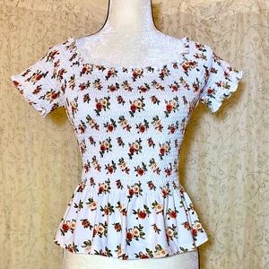 🎉Last Chance!🎉 Orange Kiss Floral Smocked Peplum Top