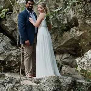 This gorgeous dress can fit any size between a 4 and an 8 as it is very accommodating. There is a slight snag at the bottom that can be hemmed off but was not noticeable when I was wearing the dress. It is gorgeous and washes well. I wore this dress for an after wedding photo shoot but it would be beautiful for a be beautiful for a wedding or prom. If interested please reach out and I am happy to send additional pictures and/or measurements or close up of any part of the dress.