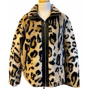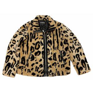 NWT EXPRESS Faux Fur Jacket LARGE Animal Print Browns Full Zip Pockets