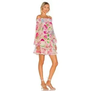 NWT Rococo Sand Alora Mini Off Shoulder Dress Floral Multi Pink Small