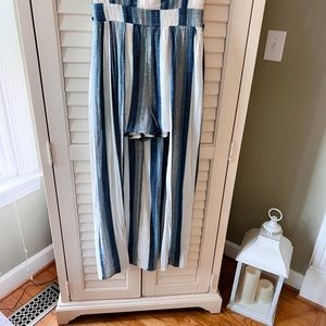 Women’s Size 7 Crystal Sky Blue & White Striped Romper with Long Back Skirt