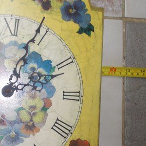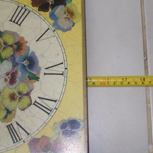 Wood clock with pansy design, as is